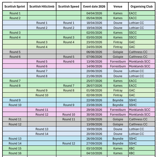 2026 Events and Regulations 2026 SCOTTISH SPRINT, HILLCLIMB & SPEED CHAMPIONSHIP REGULATIONS Entry form